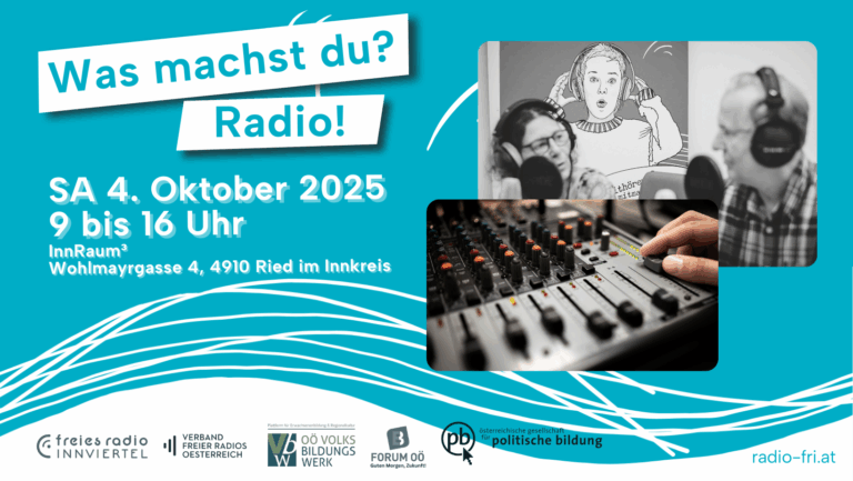 Die Mitarbeiter:innen des Freien Radios stehen dir für eine kontinuierliche Unterstützung zur Verfügung. Laufendes Feedback zur Weiterentwicklung der Sendung sowie weiterführende Ausbildungsangebote (Stimmtraining, Audio-Schnitt, Beitragsgestaltung, Interviewführung,…) bieten wir regelmäßig kostengünstig an.